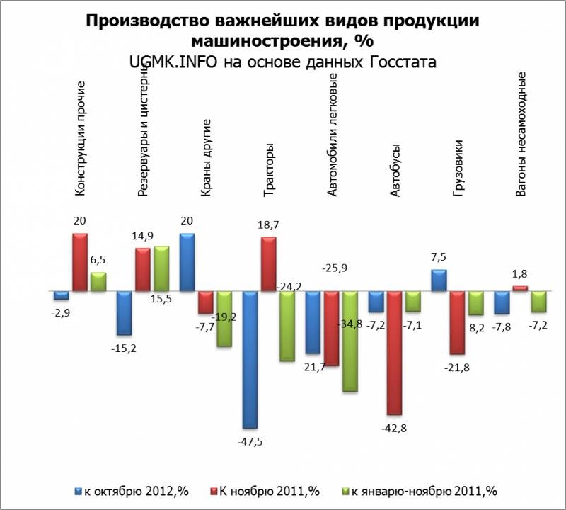 Промпроизводство в ноябре: возвращение "в минус". "UGMK.INFO (Украина)". 19 декабря 2012